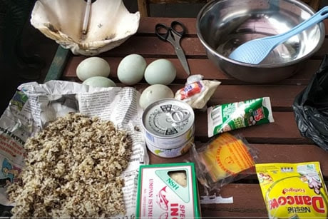 - Lalu campur udang dengan 1 karung susu dunk dan 4 butir telur ayam (putih saja).